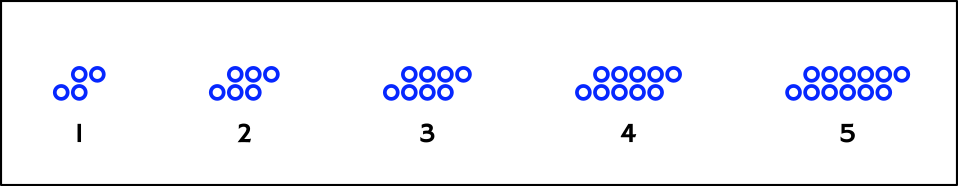 Beskriv sambandet mellan figurens nummer (n) och antal objekt i figuren.